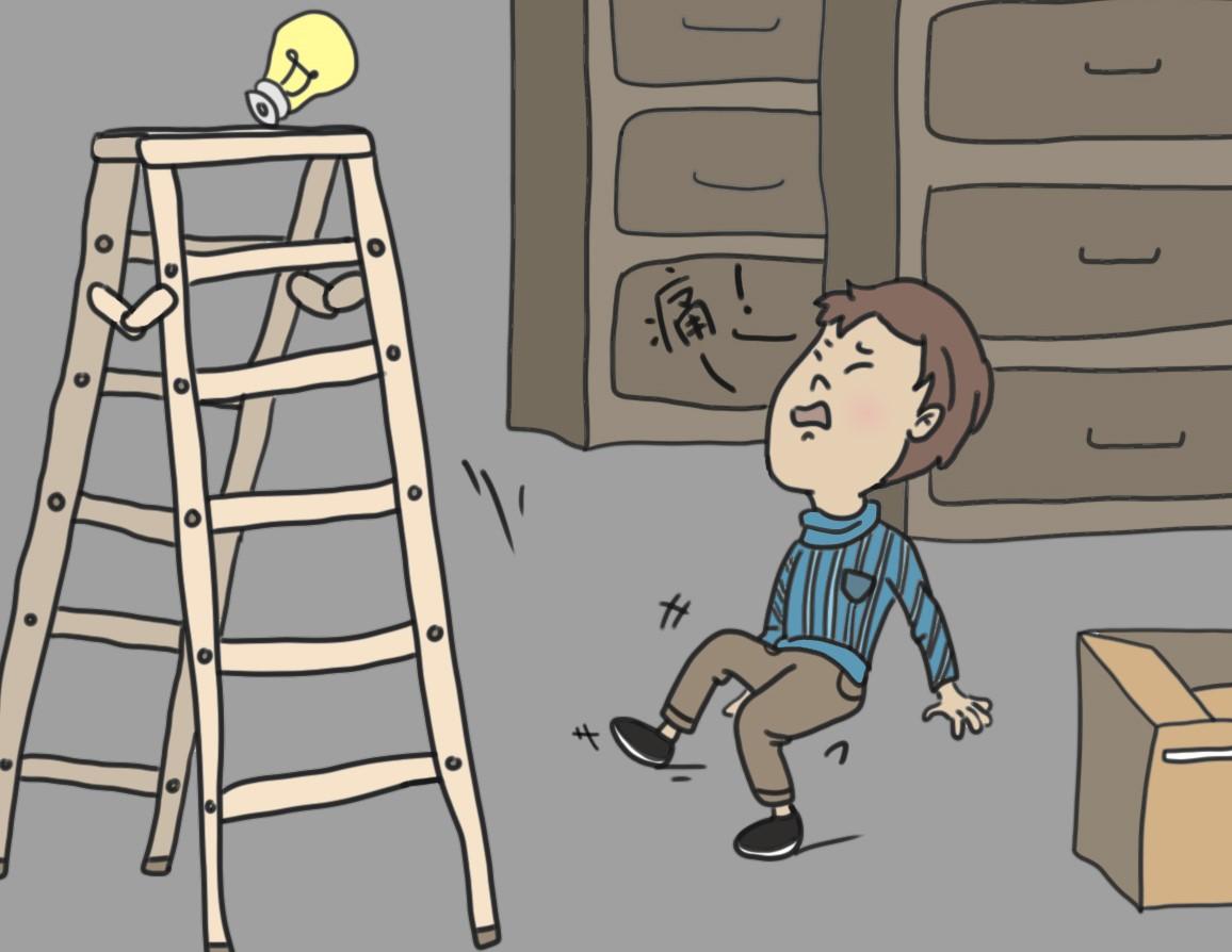 小李是公司一名后勤人员,在一次给仓库换灯时不慎从三米高的梯子上摔下受伤。
