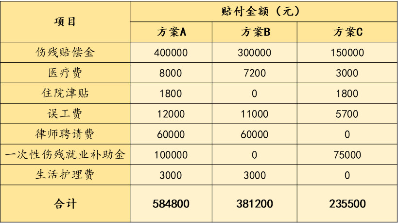 遇到该情况,如果三个方案都是100万保额的雇主责任险,但是保障内容稍有区别,最后的赔付金额会有什么差异呢?