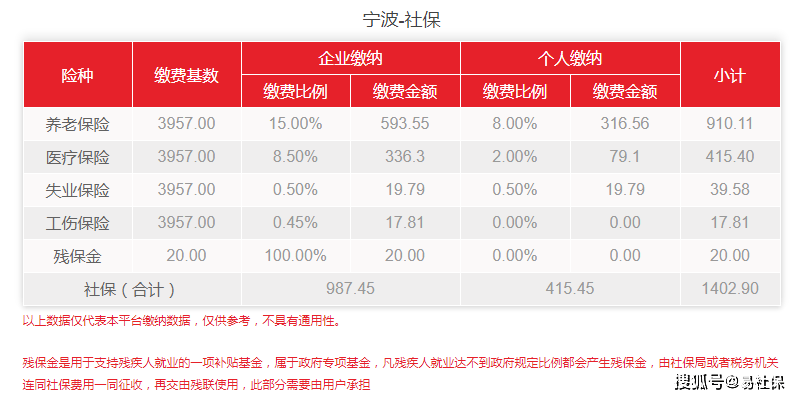 总结:2022年1月起,如果按照最低缴费基数3957来计算的话,宁波单位缴费部分减少了7.43元,个人缴费部分不变。