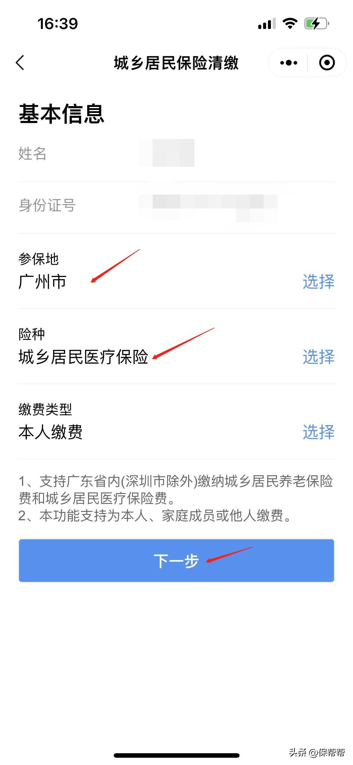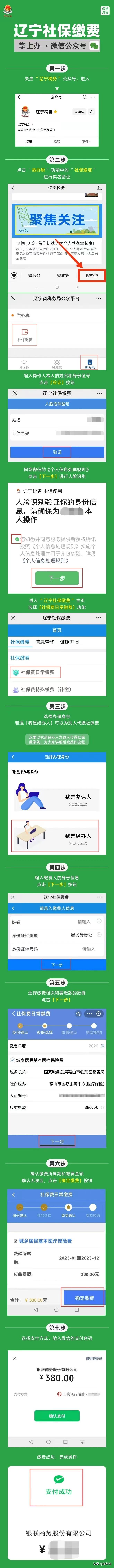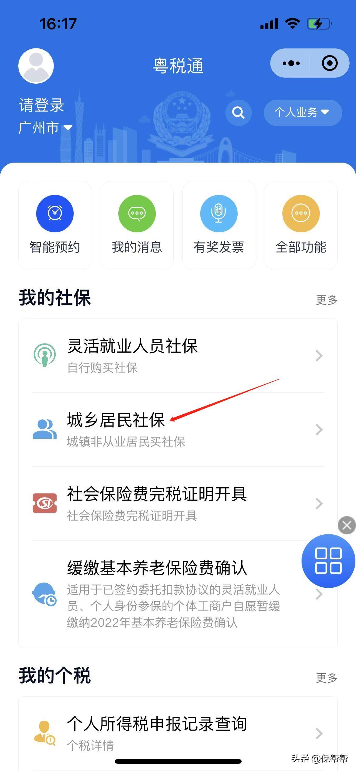 操作流程: 打开手机微信APP,点击右下角“我”—服务—城市服务—社保—社保缴费—粤税通(完成实名认证登录)—城乡居民社保—城乡居民社保清缴—选择参保地、险种—点击下一步—立即缴费,显示“缴费成功”就完成了。
