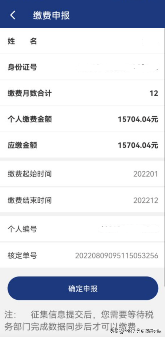 ③核对信息无误后点击“确定申报”税务部门数据同步后,即可缴费。