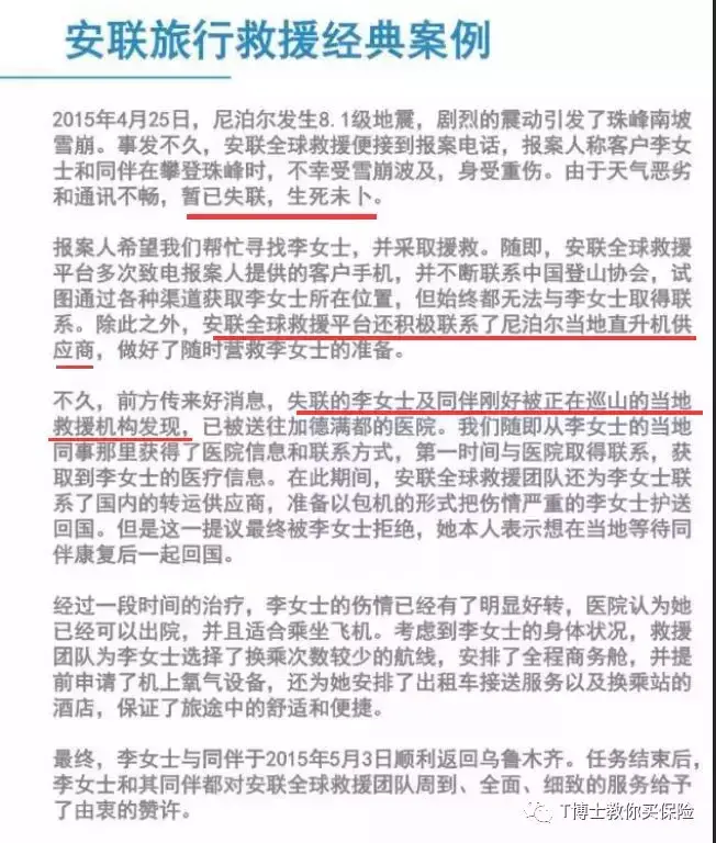 境外医疗险在投保时一定要看一下条款中的责任免除(例如潜水、攀岩是否保障)、保障地域(一般来说动乱和战争地区不保障,例如叙利亚、阿富汗、巴基斯坦等)。下面用几个事例说明一下境外旅游险以及紧急救援是在什么情况下使用的。