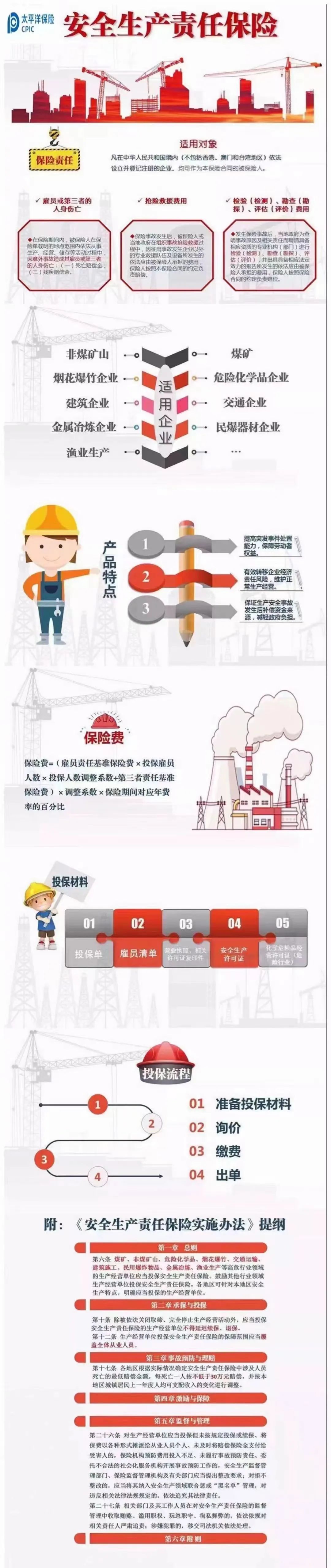 “安全生产责任保险”是一种带有公益性质的强制性商业保险,煤矿、非煤矿山(尾矿库) 危险化学品、烟花爆竹、交通运输、建筑施工、民用爆炸物品、金属冶炼、渔业生产等八大高危行业领域的生产经营单位必须投保。