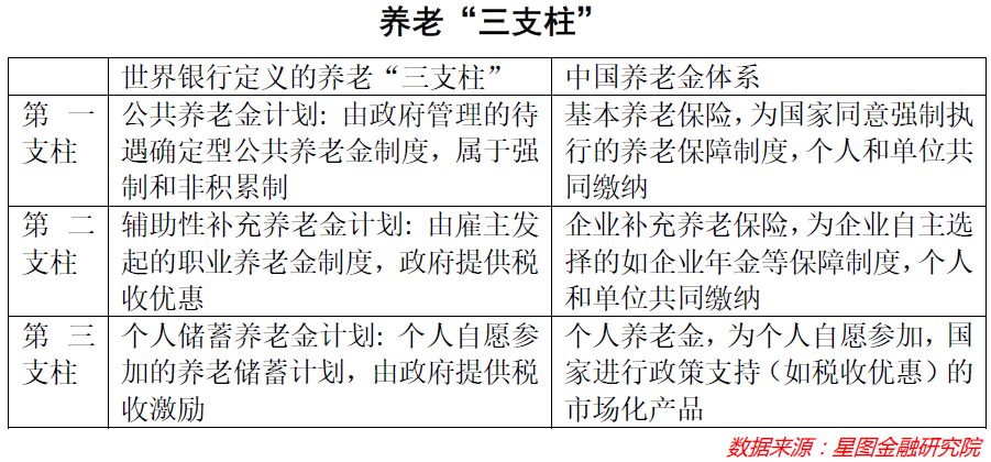 1994年,世界银行在《防止老龄危机——保护老年人及促进增长的政策》中首次提出养老金三大支柱模式,也是目前全球各国普遍的养老体系。根据世界银行的定义: