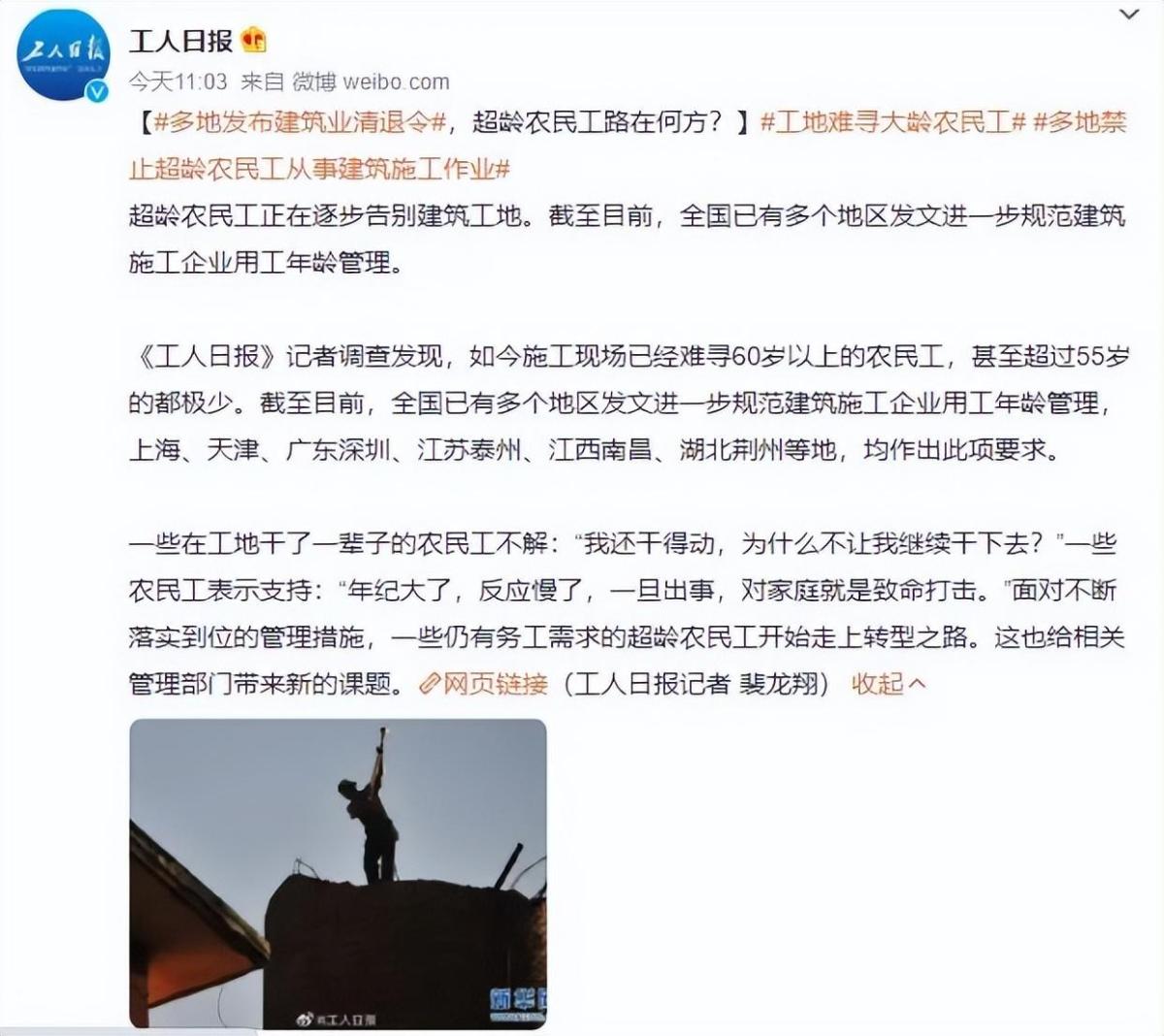 尤其是现在建筑行业又出现了“清退令”,很多省份都禁止招录50周岁以上女性、60周岁以上的男性进行施工现场。