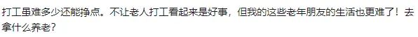 这个条例一出,引起广大工友们的讨论,更是让高龄工人无所适从,觉得自己赚钱的渠道又少了一个,而且没有了收入,养老生活将成为一个大问题。