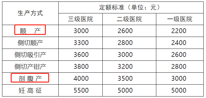 2.生育手术费(定额)如下图,生育医疗费低于定额标准的,按照实际发生额支付;生育多胎的,多生一胎生育医疗费可多报销200元。