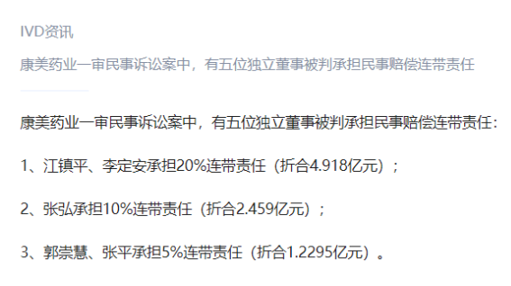 因为广州中院判决康美药业的5位独董连带赔偿责任高达近10亿元。