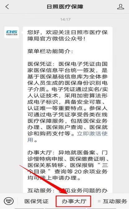 步骤1:打开微信→搜索“日照医疗保障”→点击“日照医疗保障”并关注公众号→进入公众号后点击“办事大厅”→跳转至“日照智慧医保”小程序(首次登录需要输入姓名、身份证号和进行人脸识别认证);