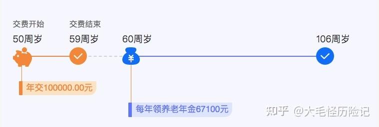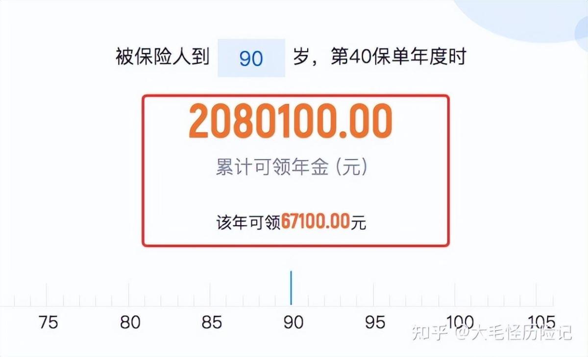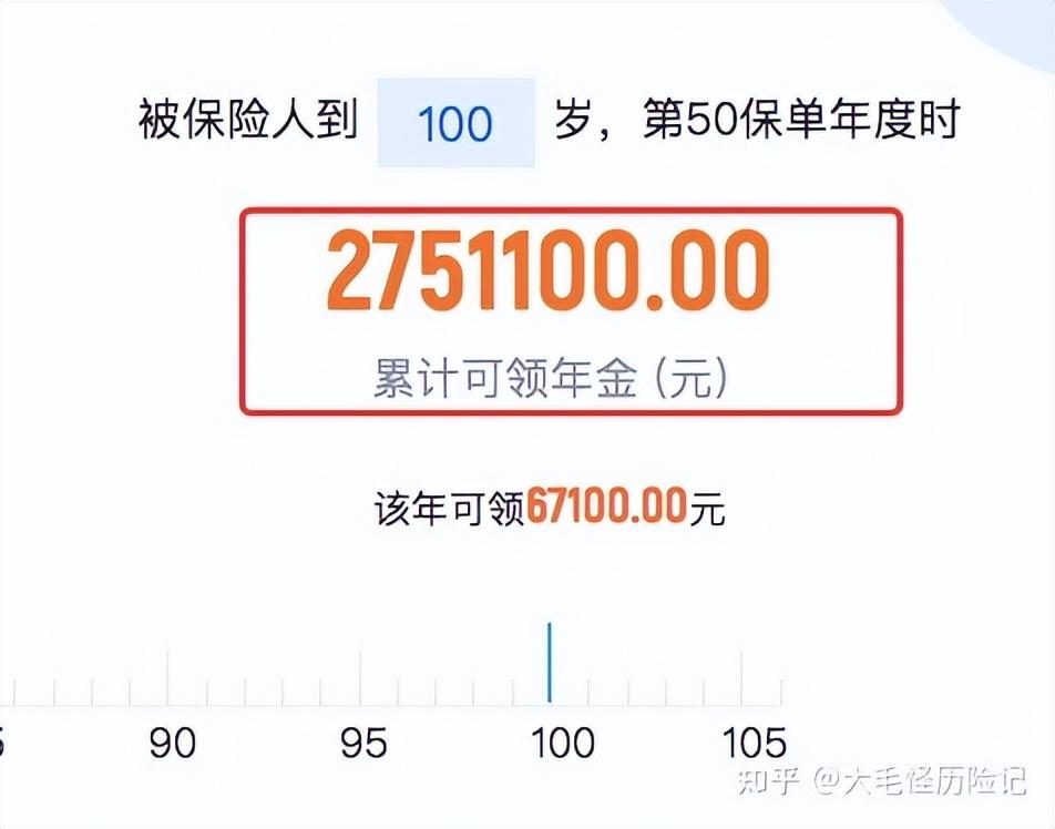 活多久领多久,如果活到90岁,总领取金额为208万,到100岁总领取275万。