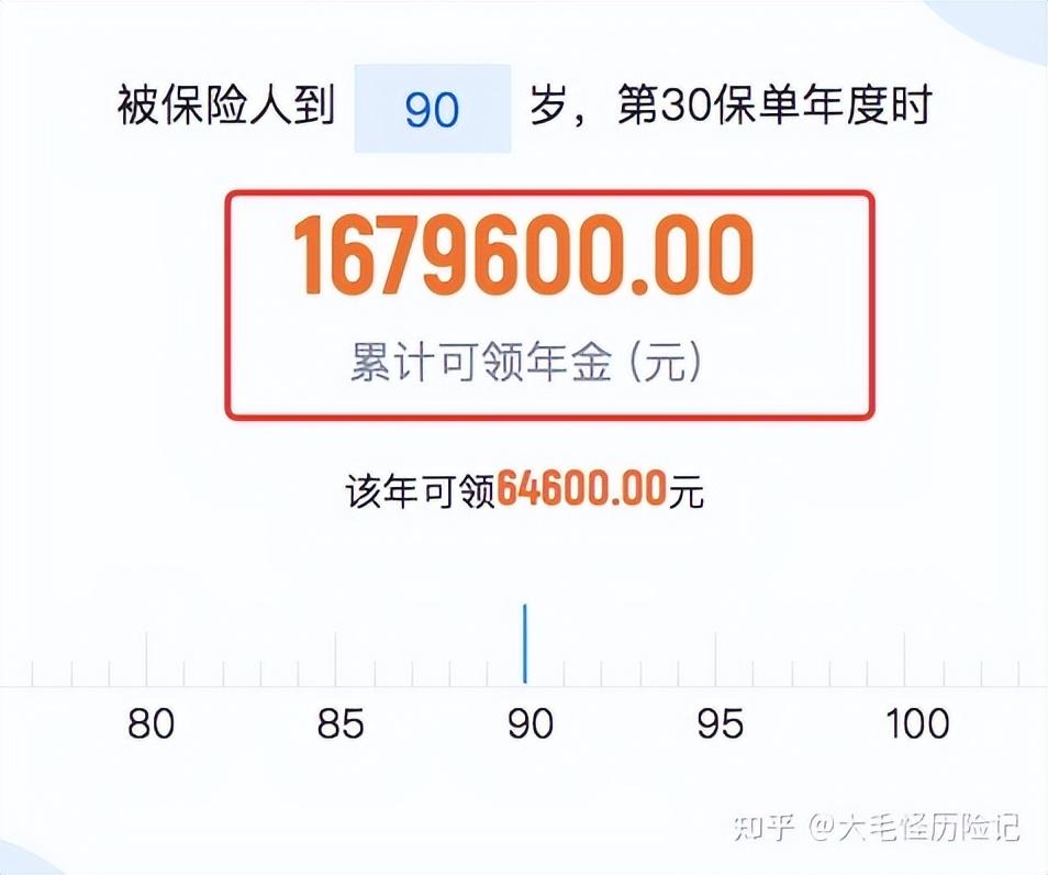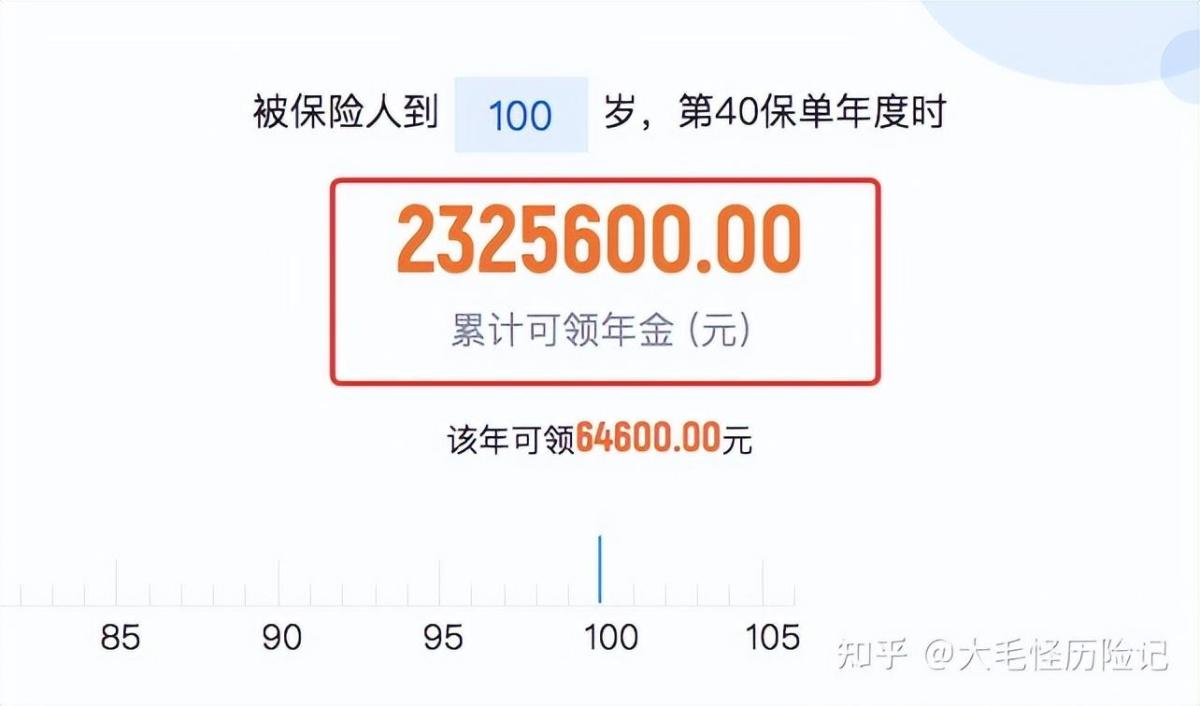 活多久领多久,如果活到90岁,总领取金额为168万,到100岁总领取232万。