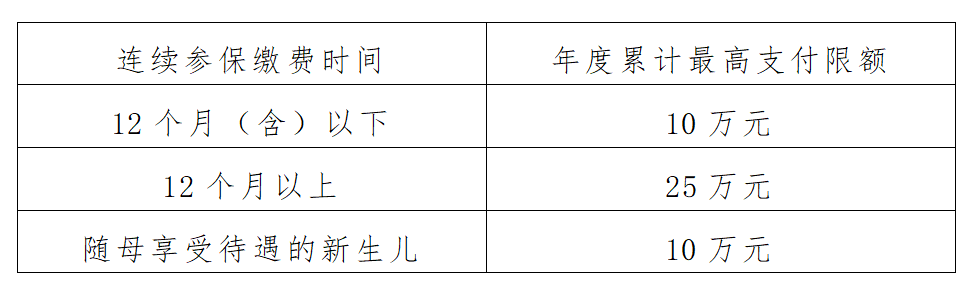 年度累计最高支付限额(不含普通门诊统筹费用)根据其连续参保缴费的时间确定: