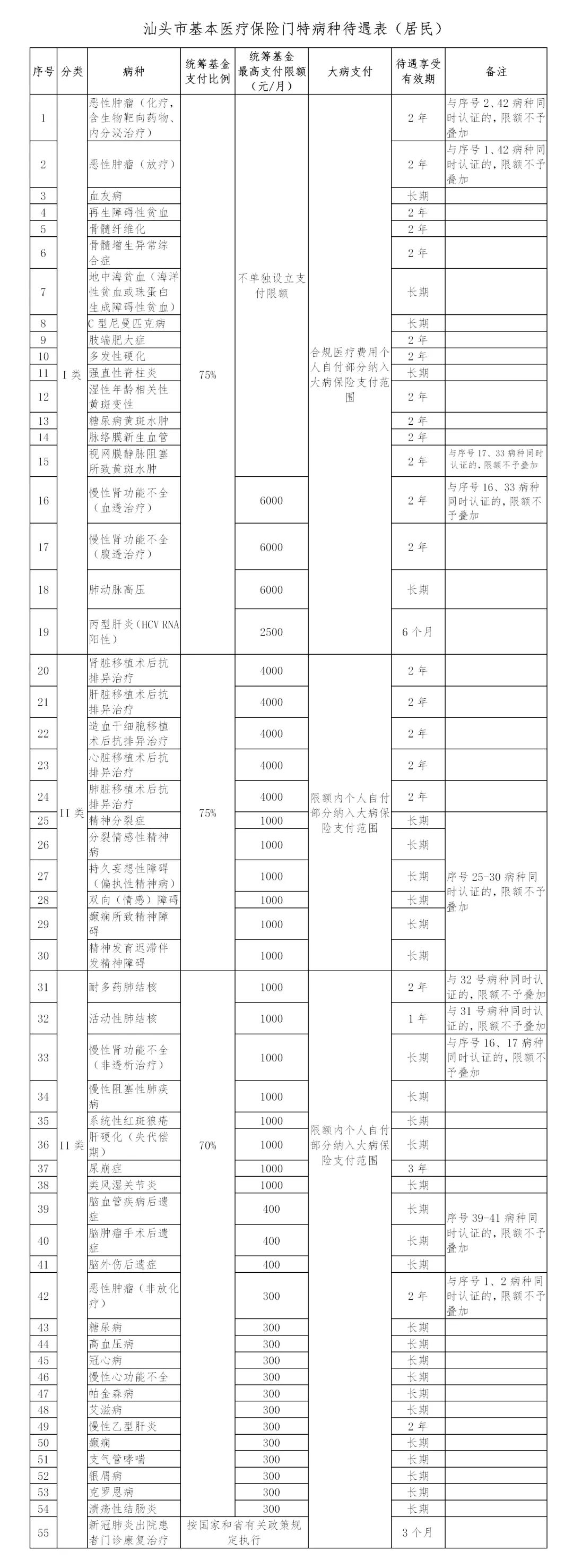 参保人患有门诊特定病种并已办妥门诊特定病种认定手续的,从办妥备案手续的当日即可按下表的报销比例、报销限额以及待遇有效期享受门诊特定病种待遇。
