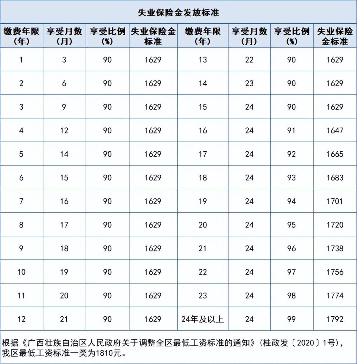 1.累计缴费时间不超过(含)15年的,按当地最低工资标准的90%发放;