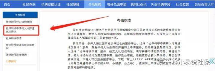 ▪ 如果无法准确定位转入地和转出地,可通过“社保查询-年度社保个人权益记录单查询”服务,查看上年度的参保缴费情况,看看哪个是提供权益记录单查询服务的地区,如果是今年才在新就业地参保,可以拨打当地的12333电话查询确定。