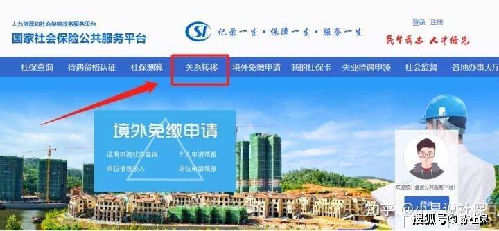 第一步:进入国家社会保险公共服务平台,登录后,在首页中,选择“关系转移”栏位进入;