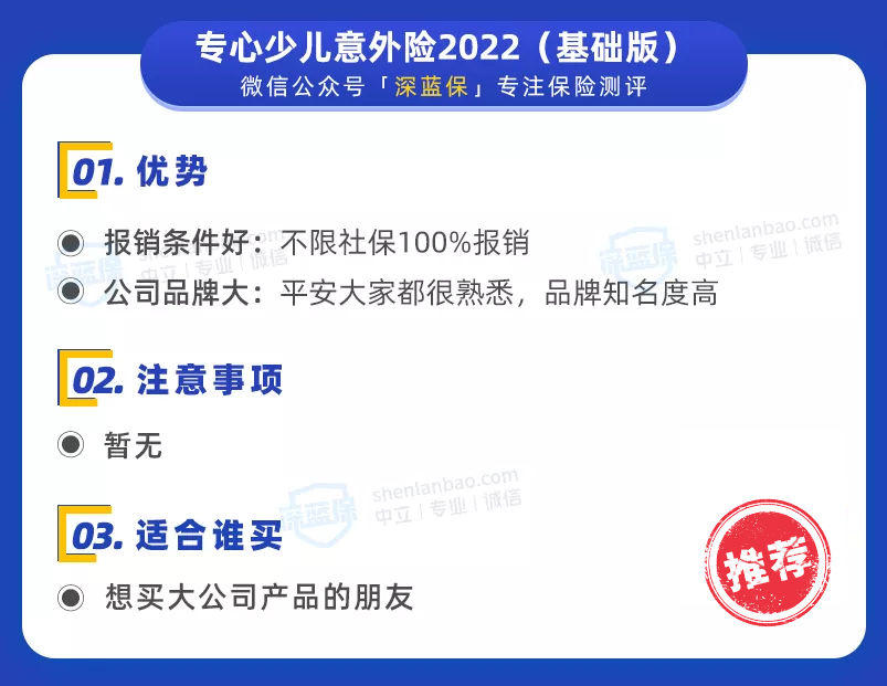 专心少儿意外险2022(基础版)保障很全面,对意外烧烫伤有额外1万的意外医疗保额。它的优势和注意事项如下: