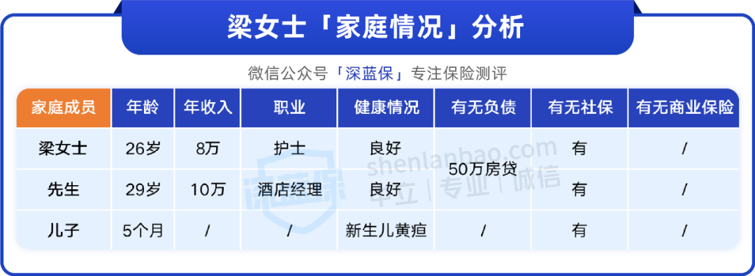 于是梁女士联系了我们,希望设计一份高性价比的保险方案,下面一起来看看。