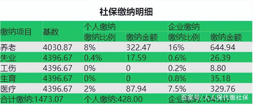如果按照成都社保缴费基数4396.67元,根据以上缴纳比例,可得: