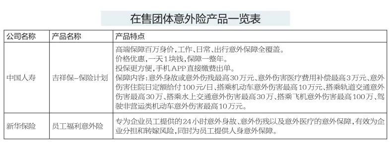 团体意外保险包括团体短期意外保险、团体交通意外保险、城镇员工补充医疗保险等。
