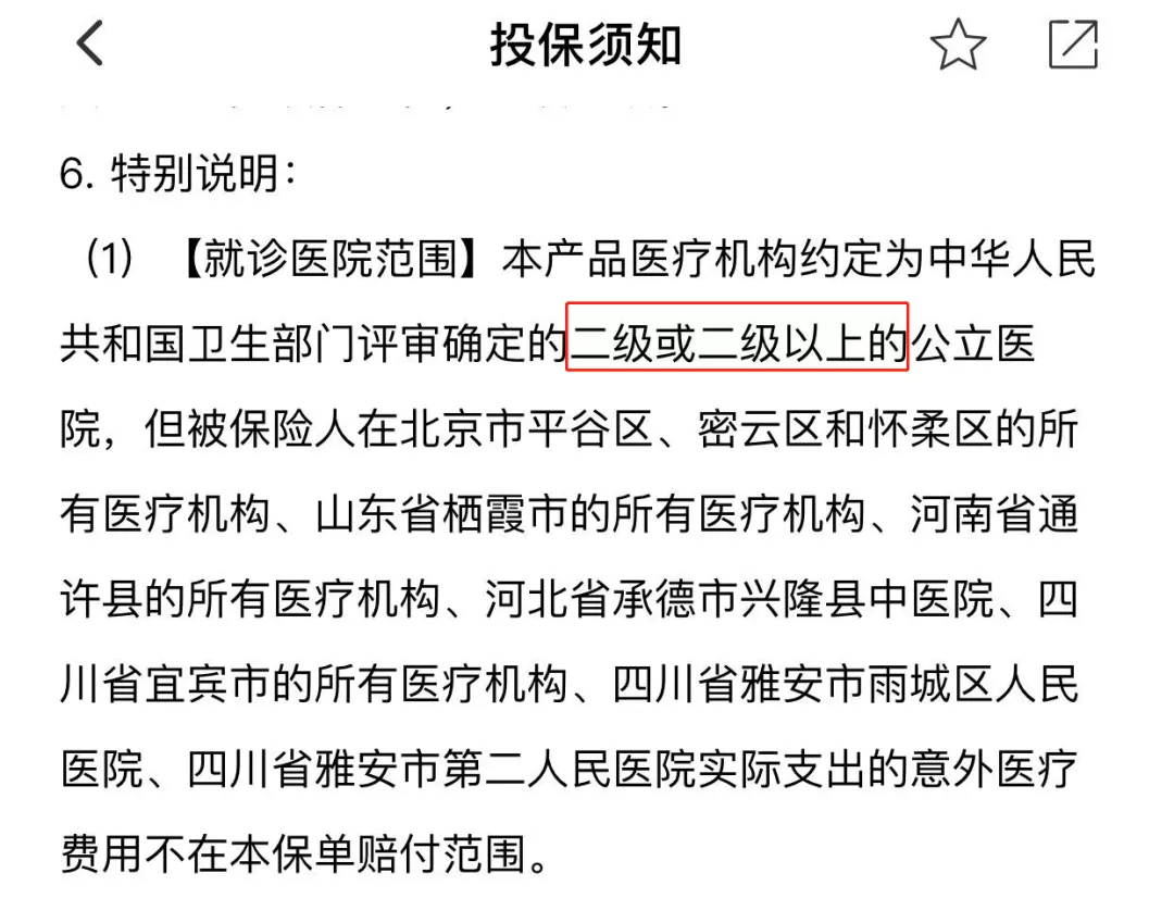 ②要去哪些医院就医能理赔,哪些医院就医理赔。一般来说,只要在二级及以上公立医院就医,就可以理赔。有的意外险会除外一些地区的医院,也就是说在该地区的某些医院就医,是不赔的~