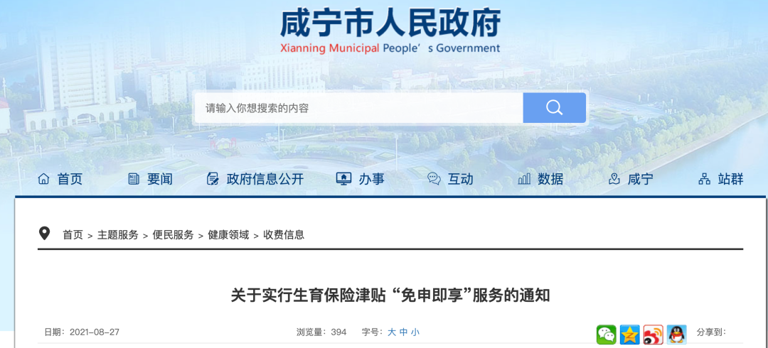 2021年8月3日湖北省医保局发布通知,自2021年8月7日起正式启动生育津贴“免申即享”服务工作。