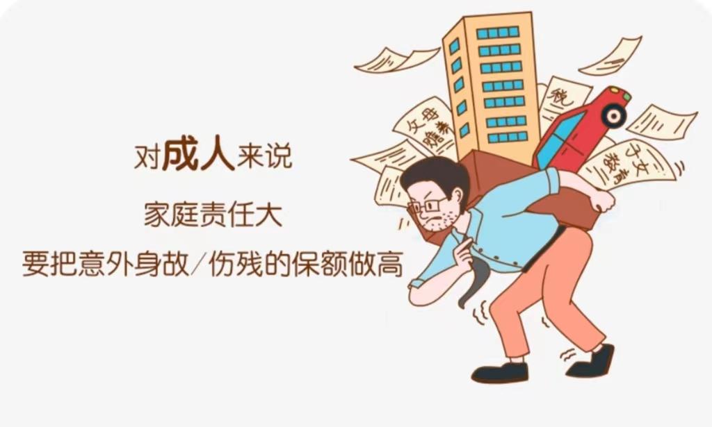 家里的经济支柱配置一份寿险,如果哪一天真的发生极端风险,保险公司能赔一笔钱,至少可以维持家里的房贷、车贷、小孩的教育、父母的赡养,让一个家庭能够正常的运转。