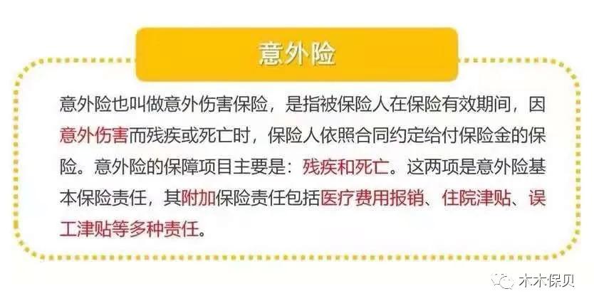 - 意外身故、残疾 这是所有意外险都会包含的内容,保额不同,保费也不同。身故责任是按照保额全额赔付,但是伤残就需要评估等级根据所评估的等级进行相应比例的赔付。