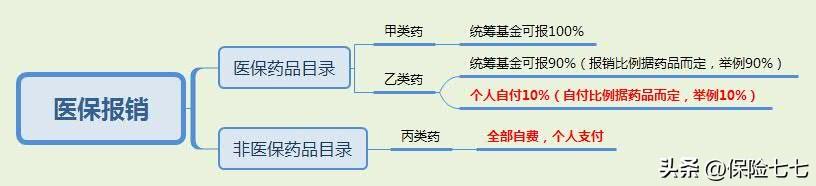 乙类药:是大部分属于统筹基金可以报的药,有一小部分(比如10%的比例)需要个人支付