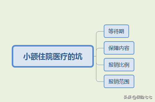 (1)一般跟在主险后面的小额医疗,住院等待期只有30天,缺点是保费贵,保额低