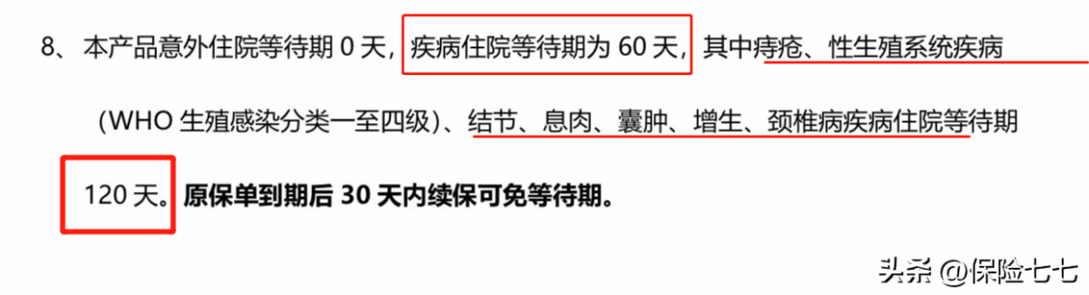 (3)但偏偏有些坑,我们容易忽视的是额外的等待期,90-120天不等,如果没注意的人,以为过了等待期,其实还有一个等待期等着你,理赔的时候很有可能中招,赔不到钱。