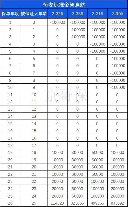 以0岁男宝宝,一次性缴纳10W为例,这款产品的复利收益在3.77%。