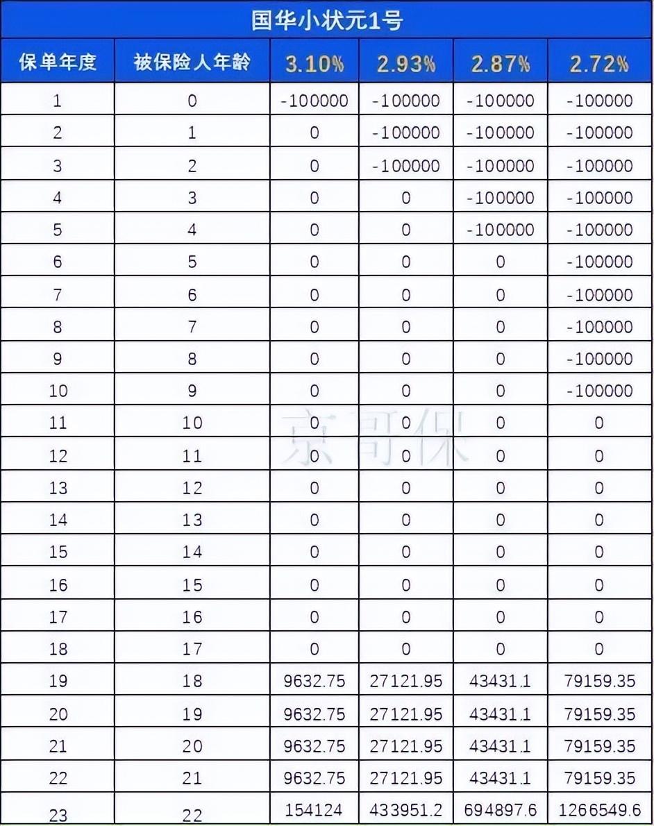 上文我提到小状元的收益率超过了3.5%,其实京哥主要想做的是,聊一聊教育金和增额终身寿险(好的增额寿终身保证复利3.5%)怎么选的问题。