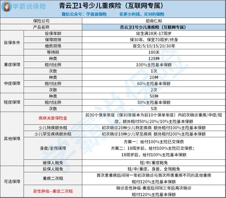 - 青云卫1号少儿重疾险的保障如何?