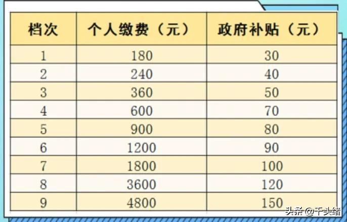 在一个年度内,参保人只能选择一个缴费标准,有以下几个档次可以选择: