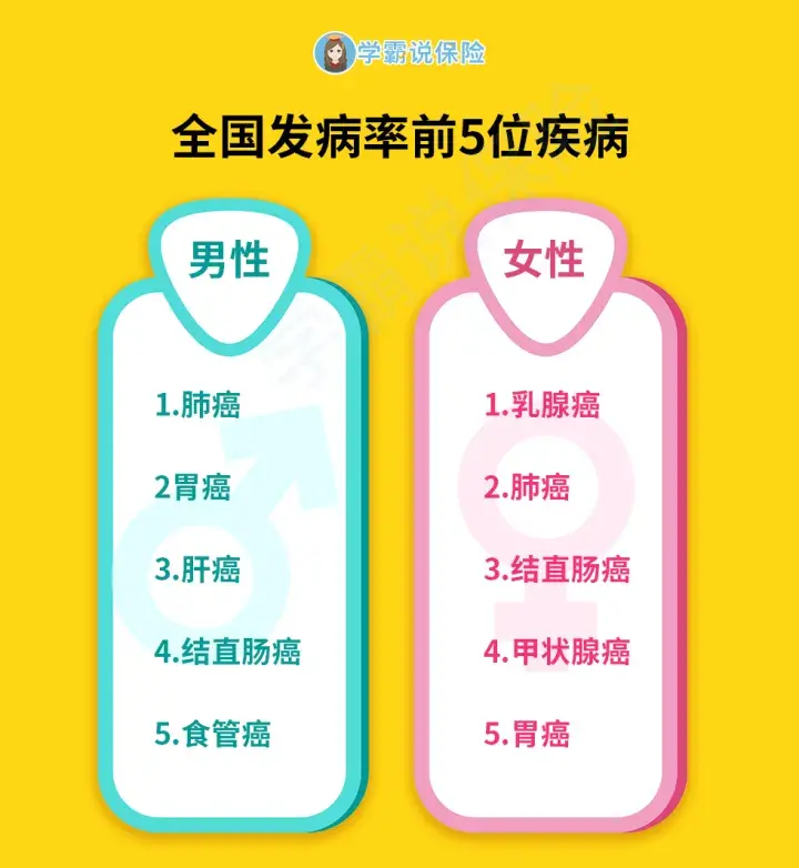由于男女性身体构造的差异,癌症占女性重疾发病概率也要比男性高一些。