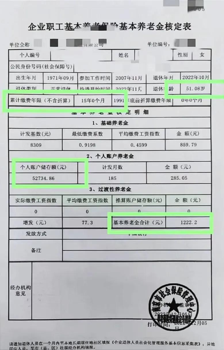 上图的南京朋友就是刚刚好交了15年的养老保险,他的退休金是1222.2元。