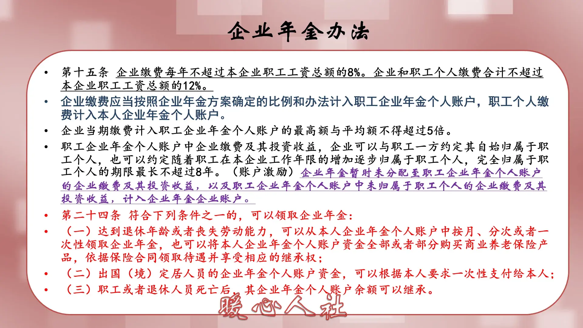 企业年金的一些特点。企业年金是一种补充养老金机制。但是跟职工养老保险有着很大的不同。