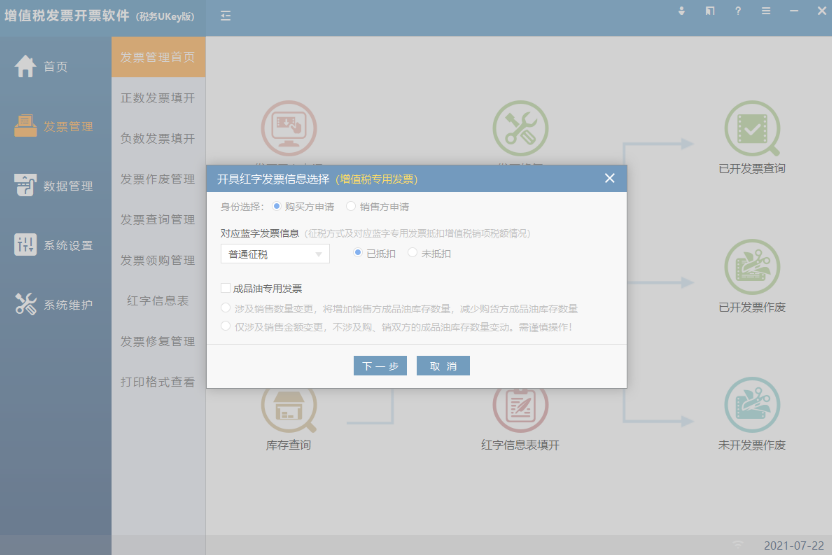 在“增值税发票开票软件(税务UKEY版)”中如何开具红字专用发票呢?接下来我用图片形式给大家展示:
