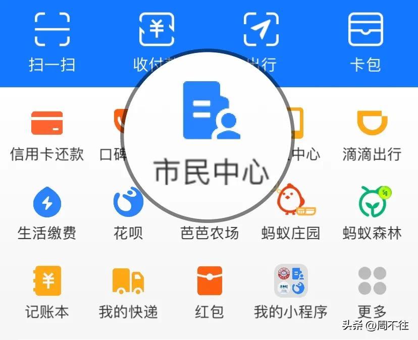 1、打开支付宝首页,找到市民中心。没有设置在首页的,可以在更多里面查找一下。