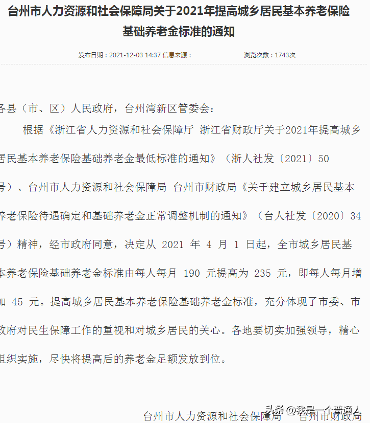 自2021年8月1日起,全省城乡居民基本养老基础养老金最低标准提高至每人每月180元,即在原每人每月165元的基础上增加15元。以下是各地市的最低标准,由于还有个人账户部分,所以这个是最低的标准,加上高龄补贴,基本上每月在这个基础上再增加100元左右。