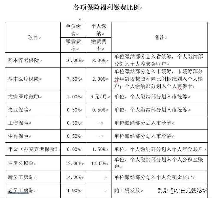 首先,每个月工资里被扣的社保的缴费金额=基数*缴费比例,基数和比例各地不一,比如下面这个张图是某地国企单位的员工缴费比例: