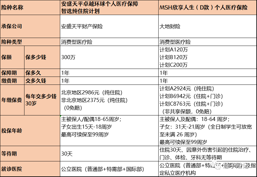 最后挑出了两款最好的中端医疗险,分别是MSH欣享人生以及安盛智选中端医疗险。
