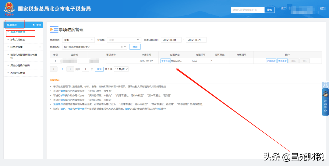 四、事项管理—事项进度管理。