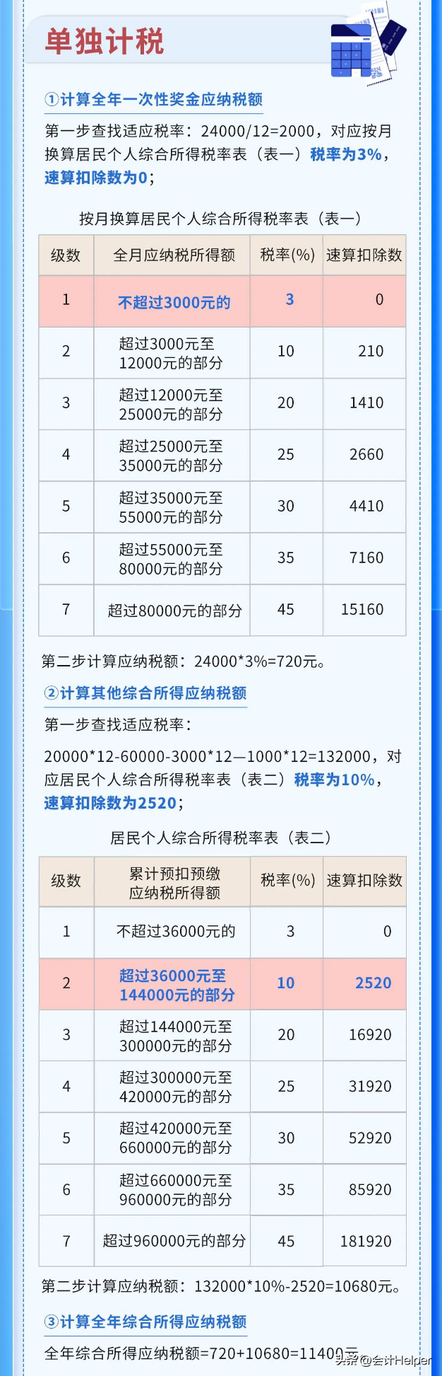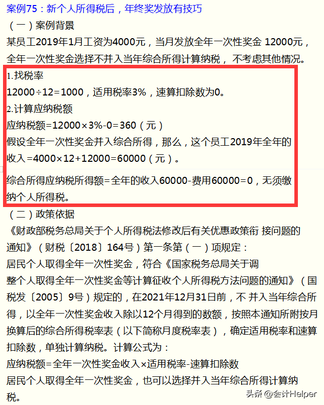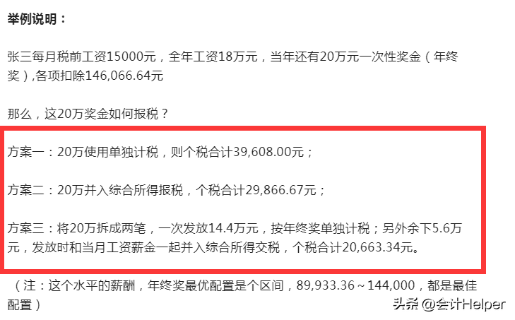 好了,有关年终奖个税的三种计算方法,以及常见的个税筹划案例,也给大家整理了!事关个人到手工资和奖金的,不明白如何计算的,要好好看看相关计算案例和筹划案例例说明哦。