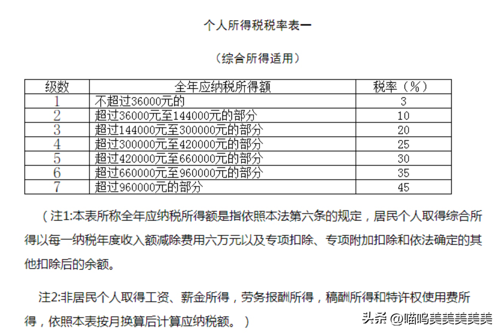 在确认适用税率时,用全年一次性奖金除以12个月得到金额A,对照下表,查看金额A对应的税率和速算扣除数。