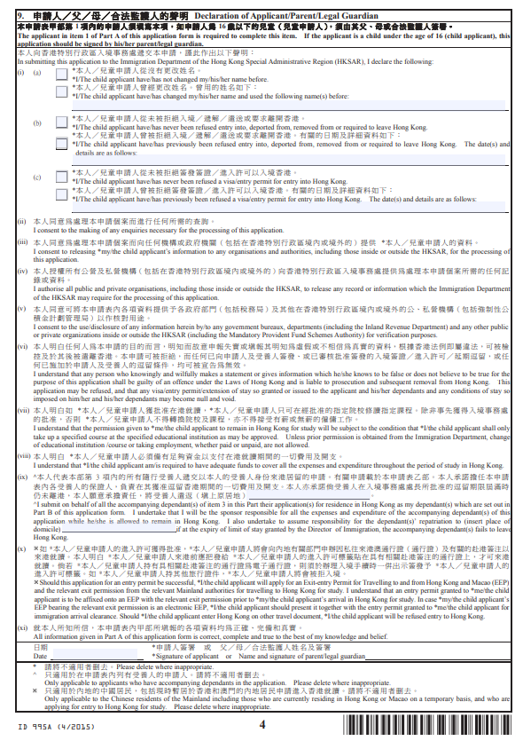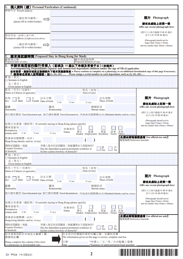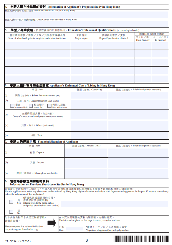 2.由担保人填妥并签名的表格ID995B(一般情况下,由录取的大学为你安排担保人);