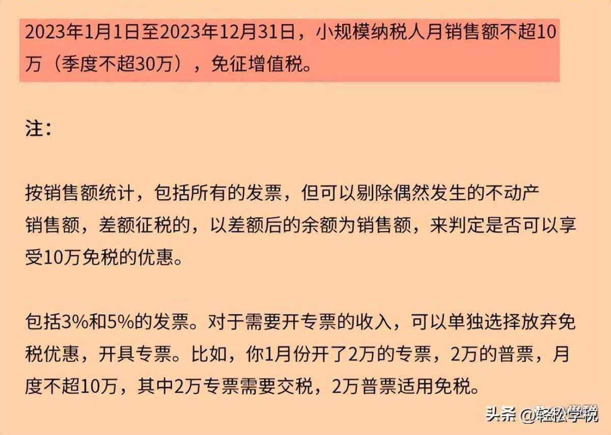 在这里需要提醒大家的是,虽然小规模纳税人3%免税的优惠2023年没有了,起征点也从原来的月度15万降低到了月度10万,但是却可以开1%征收率的专票了,对于纳税人而言,也全非都是坏事。