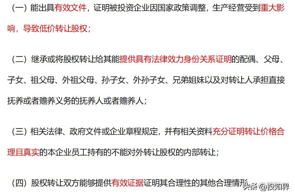 国家税务总局2014年第67号公告中第十三条对转让价偏低的正当理由进行了明确,即符合下列条件之一的股权转让收入明显偏低,视为有正当理由: