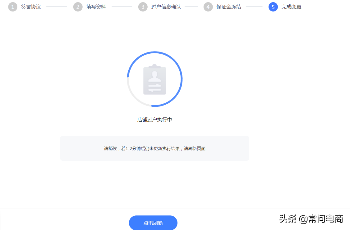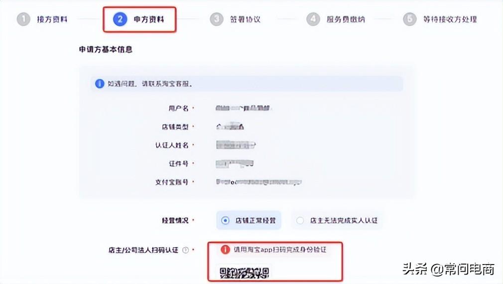 注意:看上面的步骤环节“申方资料”步骤是申请方(原店主)认证;“填写资料”步骤是接收方(新店主)认证(看下面第八步)。